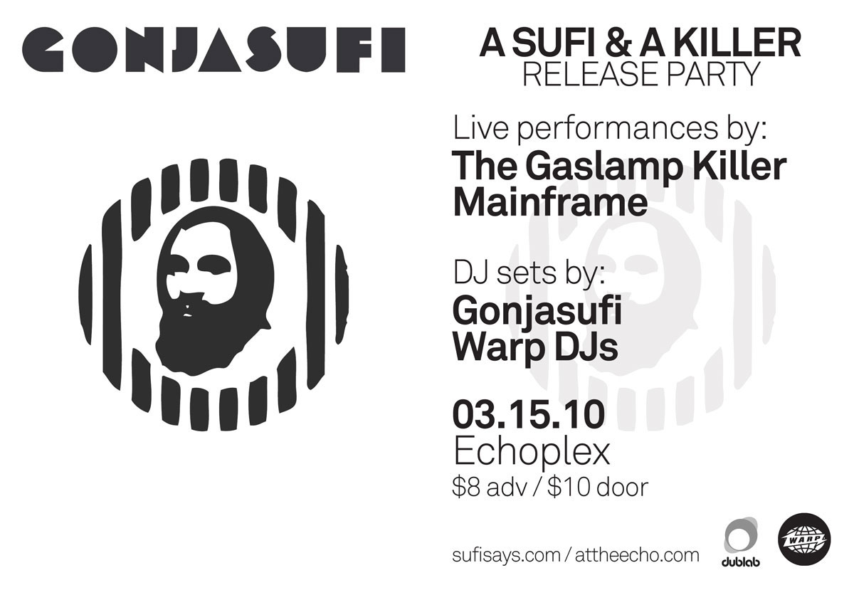 In pairing with L.A. producer Gaslamp Killer, Gonjasufi has found a powerful outlet for his otherworldly strain of singing. Together they’ve created A Sufi and a Killer, one of the most fascinating slabs of hallucinogenic head-nod music to arise from Southern California’s post-hip-hop vanguard. Unlike the digital bleeps and squelches of SoCal contemporaries FlyLo and Nosaj Thing, however, Gaslamp Killer and Gonjasufi draw from their hip-hop background to create an LP that could as easily fit on the Stones Throw roster as well as it does IDM-centric Warp. The beats knock, but for every moment of b-boy-friendly atmosphere, there’s another moment– or a simultaneous one– that makes like 21st century acid rock.